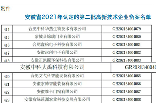 • 入選2022年度安徽省專精特新中小企業 入選2022年度安徽省創新型中小企業名單
